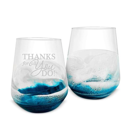 You and your team will love our 15oz Resin Wine Glass Set. Elevate any celebration with this stunning set of two 15 oz entertaining glasses—each a unique piece of functional art. Handcrafted and accented with eco-friendly resin, no two are exactly alike. Perfect for wine, cocktails, iced tea, or sparkling water, these durable glasses are engraved with your custom logo or personalized message. Each set arrives elegantly packaged in a sleek black gift box, ready to impress. Hand wash only; slight variations in shape and pattern highlight the artisanal craftsmanship.