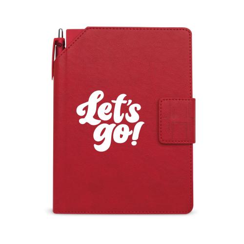 For a sophisticated and functional corporate gift, this journal and pen combo is a perfect choice. The sleek leatherette cover provides a polished look, while the matching pen and secure magnetic closure add convenience. With high-quality, FSC®-certified paper and an expandable pocket, this journal is ideal for professionals, clients, or employees who value organization and style. Minimum of 50.