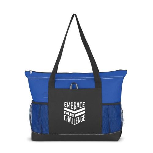 Show appreciation for your team's dedication with the Essential Tote Bag. Crafted from strong 600D polyester, it's ideal for daily commutes or company outings. With a zippered main compartment, large front pocket, and side mesh pockets, it provides convenient storage and easy access. The comfortable 22" handles make it a gift employees will use and appreciate every day. Minimum of 50