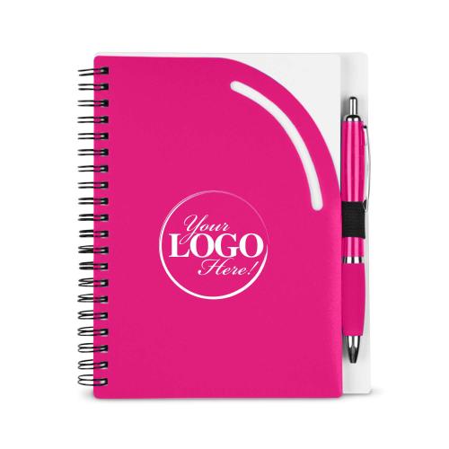 Pair practicality with style and showcase your brand with this eye-catching notebook and pen set. Ideal for team gifts, client appreciation, or event giveaways, this set features a bold front pocket, a durable spiral binding, and a smooth-writing pen. The perfect way to keep your brand visible while offering a useful tool for daily organization. Minimum of 75.