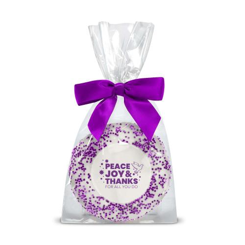 Add a little sparkle to the holidays with this oversized sugar cookie. Dipped in white chocolate and covered in sprinkles, it's individually wrapped with a satin bow for the perfect festive presentation.