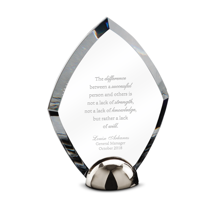 Home / Awards & Recognition Employee Recognition Awards Page 25 Filters There are 1364 Awards & Recognition Products Sort by: Bestselling Newest Price $ - $$$ Price $$$ - $ Name Aa-Zz Name Zz-Aa 755952 Alloy Cutlass Acrylic Award Gold, Rose Gold & Silver $99.99 $136.99 Order as few as 1 Ships in 6 days 755952 755951 Alloy Summit Acrylic Award Gold, Rose Gold & Silver $99.99 $136.99 Order as few as 1 Ships in 6 days 755951 OPT313QS Quick Ship - Penta Crystal Obelisk Award $149.99 $205.49 Order as few as 1 Ships in 1 day OPT313QS 755848 Prism Crystal Paperweight $59.99 $82.19 Order as few as 1 Ships in 6 days 755848 757233B Wave Dais Crystal Award Sizes: 6", 8", 10" | 5 Colors $109.99 - $169.99 $150.69 - $232.89 Order as few as 1 Ships in 6 days 757233B 700354N Courage of Integrity Framed Signature Motivational Poster $139.99 - $169.99 $191.79 - $232.89 Order as few as 1 Ships in 6 days 700354N 700369N Leadership Compass Signature Frame $139.99 - $169.99 $191.79 - $232.89 Order as few as 1 Ships in 6 days 700369N 700365N Power of Attitude Framed Signature Motivational Poster $139.99 - $169.99 $191.79 - $232.89 Order as few as 1 Ships in 6 days 700365N 706105-911-FA Thank you Horses Framed Award Choose Your Frame $59.99 - $74.99 $82.19 - $102.74 Order as few as 1 Ships in 3 days 706105-911-FA 732306-911-FA Ambition Basketball Framed Award Choose Your Frame $59.99 - $74.99 $82.19 - $102.74 Order as few as 1 Ships in 3 days 732306-911-FA 732322-911-FA Wisdom Path Framed Award Choose Your Frame $59.99 - $74.99 $82.19 - $102.74 Order as few as 1 Ships in 3 days 732322-911-FA 732328-911-FA Strength Tree Framed Award Choose Your Frame $59.99 - $74.99 $82.19 - $102.74 Order as few as 1 Ships in 3 days 732328-911-FA 732347-911-FA Focus Lighthouse Framed Award Choose Your Frame $59.99 - $74.99 $82.19 - $102.74 Order as few as 1 Ships in 3 days 732347-911-FA 732350-911-FA Leadership Compass Framed Award Choose Your Frame $59.99 - $74.99 $82.19 - $102.74 Order as few as 1 Ships in 3 days 732350-911-FA 732352-911-FA Service Helicopter Framed Award Choose Your Frame $59.99 - $74.99 $82.19 - $102.74 Order as few as 1 Ships in 3 days 732352-911-FA 732355-911-FA Teamwork Ants Framed Award Choose Your Frame $59.99 - $74.99 $82.19 - $102.74 Order as few as 1 Ships in 3 days 732355-911-FA 732403-911-FA Possibilities Wooden Bridge Framed Award Choose Your Frame $59.99 - $74.99 $82.19 - $102.74 Order as few as 1 Ships in 3 days 732403-911-FA 732472-911-FA Diversity Marbles Framed Award Choose Your Frame $59.99 - $74.99 $82.19 - $102.74 Order as few as 1 Ships in 3 days 732472-911-FA 733219-911-FA Commitment Daisy Framed Award Choose Your Frame $59.99 - $74.99 $82.19 - $102.74 Order as few as 1 Ships in 3 days 733219-911-FA 733255-911-FA Integrity Tree Framed Award Choose Your Frame $59.99 - $74.99 $82.19 - $102.74 Order as few as 1 Ships in 3 days 733255-911-FA 734066-911-FA Change Forest Falls Framed Award Choose Your Frame $59.99 - $74.99 $82.19 - $102.74 Order as few as 1 Ships in 3 days 734066-911-FA 735423-911-FA Excellence Golf Framed Award Choose Your Frame $59.99 - $74.99 $82.19 - $102.74 Order as few as 1 Ships in 3 days 735423-911-FA 751692-911-FA Success Waterfall Framed Award Choose Your Frame $59.99 - $74.99 $82.19 - $102.74 Order as few as 1 Ships in 3 days 751692-911-FA 751695-911-FA Attitude Lighthouse Framed Award Choose Your Frame $59.99 - $74.99 $82.19 - $102.74 Order as few as 1 Ships in 3 days 751695-911-FA 753423-911-FA Diversity Umbrellas Framed Award Choose Your Frame $59.99 - $74.99 $82.19 - $102.74 Order as few as 1 Ships in 3 days 753423-911-FA 753737-911-FA Destiny River Framed Award Choose Your Frame $59.99 - $74.99 $82.19 - $102.74 Order as few as 1 Ships in 3 days 753737-911-FA 756679 Above & Beyond Appreciation Token (5-Pack) Pack of 5 $9.99 $13.69 Order as few as 1 Ships in 1 day 756679 756680 Commitment to Excellence Appreciation Token (5-Pack) Pack of 5 $9.99 $13.69 Order as few as 1 Ships in 1 day 756680 756679 Leading by Example Appreciation Token (5-Pack) Pack of 5 $9.99 $13.69 Order as few as 1 Ships in 1 day 756679 1 ... 24 25 26 ... 48