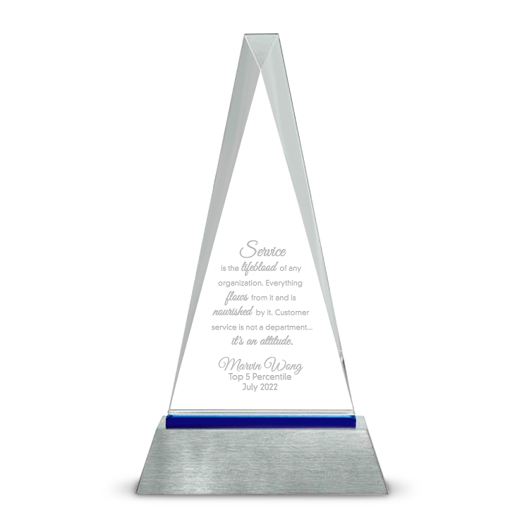 Home / Awards & Recognition / Leadership Awards Return to Awards & Recognition Leadership Awards Page 8 Filters There are 246 Leadership Awards Products Sort by: Bestselling Newest Price $ - $$$ Price $$$ - $ Name Aa-Zz Name Zz-Aa 761973 Alto Alumni Crystal Award $169.99 $232.89 Order as few as 1 Ships in 6 days 761973 761972 Petalo Alumni Crystal Award $169.99 $232.89 Order as few as 1 Ships in 6 days 761972 761971 Pointe Alumni Crystal Award $169.99 $232.89 Order as few as 1 Ships in 6 days 761971 761970 Tour Alumni Crystal Award $169.99 $232.89 Order as few as 1 Ships in 6 days 761970 761979 Kyle Noir Crystal Award 3 Sizes $149.99 - $249.99 $205.49 - $342.49 Order as few as 1 Ships in 6 days 761979 761976 Jayne Noir Crystal Award 3 Sizes $99.99 - $159.99 $136.99 - $219.19 Order as few as 1 Ships in 6 days 761976 761715BK Summit Keystone Crystal Award 3 Sizes | 5 Colors $99.99 - $159.99 $136.99 - $219.19 Order as few as 1 Ships in 6 days 761715BK 761269B Polly Dais Crystal Award Sizes: 7.5", 9.5", 11.5" | 5 Colors $109.99 - $269.99 $150.69 - $369.89 Order as few as 1 Ships in 6 days 761269B 761051B Laurenti Dais Crystal Award Sizes: 9", 11", 13" | 5 Colors $99.99 - $189.99 $136.99 - $260.29 Order as few as 1 Ships in 6 days 761051B 346617B Chatham Dais Crystal Award Sizes: 5.5", 7.5", 9.5" | 5 Colors $99.99 - $159.99 $136.99 - $219.19 Order as few as 1 Ships in 6 days 346617B 761017 Sapphire Prism Pyramid $299.99 $410.99 Order as few as 1 Ships in 1 day 761017 757200 Stream Crystal Award 2 Sizes: 5", 7" $143.99 - $169.99 $197.27 - $232.89 Order as few as 1 Ships in 6 days 757200 757199 Crush Crystal Award $186.99 $256.18 Order as few as 1 Ships in 6 days 757199 757198 Celebrity Crystal Award $197.99 $271.25 Order as few as 1 Ships in 6 days 757198 757197 Slice Crystal Award $263.99 $361.67 Order as few as 1 Ships in 6 days 757197 757194 Edison Crystal Award $186.99 $256.18 Order as few as 1 Ships in 6 days 757194 757186 Stacked Crystal Award 3 Sizes: 7.5", 8.5", 9.5" $131.99 - $175.99 $180.83 - $241.11 Order as few as 1 Ships in 6 days 757186 757219 Splinter Crystal Award 2 Sizes | 2 Colors $176.99 - $239.99 $242.48 - $328.79 Order as few as 1 Ships in 6 days 757219 756790 Cynthia Crystal Award Sizes: 10", 12", 15" $149.99 - $219.99 $205.49 - $301.39 Order as few as 1 Ships in 6 days 756790 756781 Alexia Crystal Award Sizes: 6", 8", 10" $159.99 - $259.99 $219.19 - $356.19 Order as few as 1 Ships in 6 days 756781 756778 Sophia Crystal Award Sizes: 7", 8.75", 10.5" $199.99 - $299.99 $273.99 - $410.99 Order as few as 1 Ships in 6 days 756778 756931 Current Crystal Award Available in Black or Blue $49.99 - $179.99 $68.49 - $246.59 Order as few as 1 Ships in 6 days 756931 756796A Horizontal Emperor Dais Crystal Award 3 Sizes | 5 Colors $69.99 - $219.99 $95.89 - $301.39 Order as few as 1 Ships in 6 days 756796A 756768 Saachrine Art Glass Award Blue or Clear Base | 2 Sizes: 4", 4.75" $119.99 - $219.99 $164.39 - $301.39 Order as few as 1 Ships in 6 days 756768 OPT902QS Quick Ship - Prism Crystal Obelisk Award $129.99 - $189.99 $178.09 - $260.29 Order as few as 1 Ships in 6 days OPT902QS OPS362QS Quick Ship - Crystal Star Tower Award $199.99 $273.99 Order as few as 1 Ships in 6 days OPS362QS 755919C-WIT Whatever It Takes Tower Medallion Crystal Award $129.99 - $279.99 $178.09 - $383.59 Order as few as 1 Ships in 6 days 755919C-WIT 755919C-MAD Making the Difference Tower Medallion Crystal Award $129.99 - $279.99 $178.09 - $383.59 Order as few as 1 Ships in 6 days 755919C-MAD 755919C-DTS Dare to Soar Tower Medallion Crystal Award $129.99 - $279.99 $178.09 - $383.59 Order as few as 1 Ships in 6 days 755919C-DTS 1 ... 7 8 9