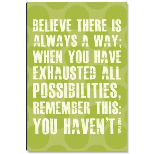 You and your team will love our Believe There Is A Way Inspirational Art. Inspirational art created enhances any space. The inspirational art features an inspirational quote or message and is a great way to inspire and motivate in any size space whether used for home decor or office art. Inspirational Art is available in Gallery Canvas, Wood, Acrylic, Metal and more.