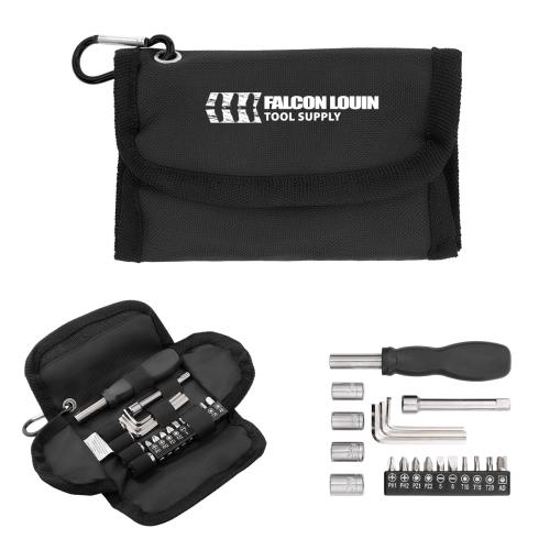 Unleash your inner craftsman with the EcoCraft 19-Piece Recycled Tool Set, a blend of sustainability and functionality that speaks volumes about your brand's values. Encased in a durable rPET pouch made from recycled materials, this eco-friendly tool set is perfect for those who appreciate both quality and responsibility. Its sleek black case features secure flap closures, ensuring your tools are always safe and ready for action.