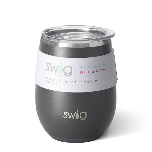 Indulge in the exquisite craftsmanship of the Swig 14oz Stemless Wine Cup. Crafted from premium stainless steel, this versatile tumbler transforms everyday moments into celebrations. Thanks to its triple insulation, drinks stay refreshingly cold for up to 9 hours or comforting hot for up to 3 hours, creating a delightful sip every time. Choose from sleek grey or deep navy to match your style, and personalize it with our precise laser engraving for a touch of sophistication.