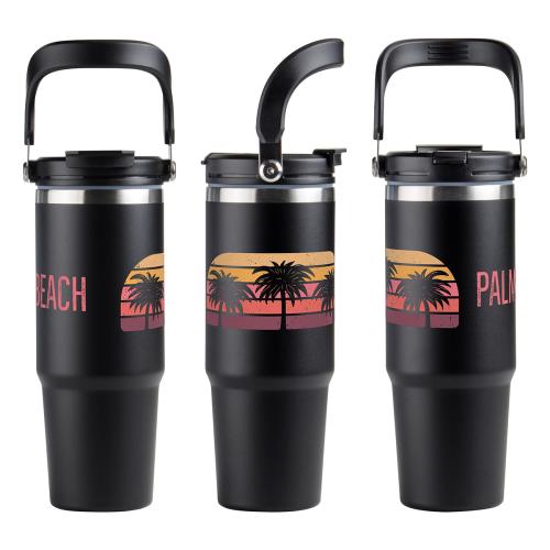 Experience unparalleled convenience with our Travel Insulated Tumbler. Made from premium 18/8 stainless steel, it keeps beverages cold for up to 20 hours. The copper-lined double-wall insulation ensures optimal temperature retention on your adventures. Designed with a stylish color matched handle for easy portability and a color matched polypropylene lid offering two convenient drinking options - a flip-top spout, with removable straw, and a flip-top opening for easy sipping. Elevate your hydration game with our BPA free and FDA certified Travel Insulated Tumbler.