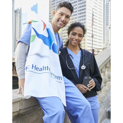 Imagine your brand splashed across this large canvas in brilliant, fade-resistant colors, turning heads and sparking conversations. The unique Versa-Loop feature ensures easy hanging, making this towel as practical as it is gorgeous.
