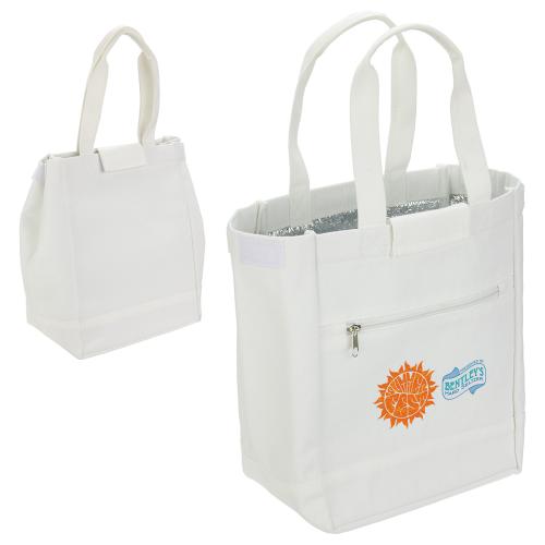 Enjoy lunch with our Schooner RPET canvas lunch tote! Made from recycled plastic bottles, this 280GSM eco-friendly tote showcases both style and practicality. The silver reflective thermal insulated interior lining keeps your meal cool, ensuring a delightful lunch experience. The spacious main compartment fits food containers and drinks. The sturdy 15-inch handles provide a comfortable grip for carrying. Its compact design allows for effortless storage in your bag or backpack when not in use.
