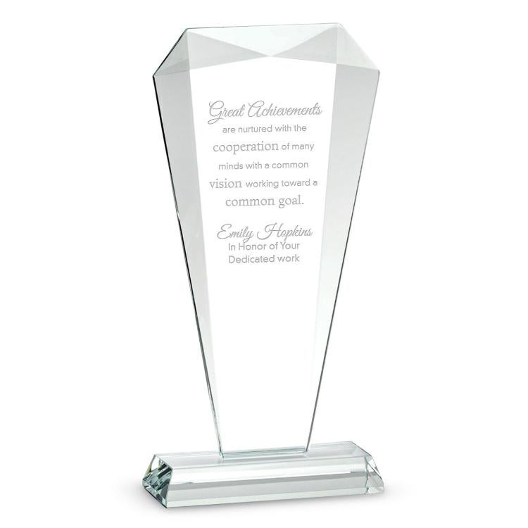 Home / Awards & Recognition / Glass Trophies Return to Awards & Recognition Glass Awards and Trophies Page 4 Filters There are 276 Glass Trophies Products Sort by: Bestselling Newest Price $ - $$$ Price $$$ - $ Name Aa-Zz Name Zz-Aa 761747 Fancy Crystal Award 3 Sizes $49.99 - $89.99 $68.49 - $123.29 Order as few as 1 Ships in 6 days 761747 752420 Brilliant Accomplishment Crystal Award 5 Colors to Choose From! $179.99 $246.59 Order as few as 1 Ships in 6 days 752420 754557 Floating Gem Crystal Award Colors: Red, Blue, Green, Amber, Clear $385.99 $528.81 Order as few as 1 Ships in 6 days 754557 752647 Swirling Spire Art Glass Award $99.99 $136.99 Order as few as 1 Ships in 6 days 752647 757253B Terminus Crystal Award $79.99 - $119.99 $109.59 - $164.39 Order as few as 1 Ships in 6 days 757253B 761744 Fulcrum Crystal Award 3 Sizes $49.99 - $89.99 $68.49 - $123.29 Order as few as 1 Ships in 6 days 761744 754801-CLB-FA Flame Peak Crystal Award $79.99 - $119.99 $109.59 - $164.39 Order as few as 1 Ships in 6 days 754801-CLB-FA 753044B Esteem Dais Crystal Award 4 Sizes | 5 Colors $79.99 - $139.99 $109.59 - $191.79 Order as few as 1 Ships in 8 days 753044B 765034 Serpentia Art Glass Award 2 Sizes $69.99 - $89.99 $95.89 - $123.29 Order as few as 1 Ships in 6 days 765034 756765 Samaritan Art Glass Award Blue or Clear Base | 3 Sizes: 8", 9.5", 11" $129.99 - $249.99 $178.09 - $342.49 Order as few as 1 Ships in 6 days 756765 756925 Chiseled Peak Crystal Award 3 Sizes: 5.5", 7", 8.5" $119.99 - $239.99 $164.39 - $328.79 Order as few as 1 Ships in 6 days 756925 754802-CLB Octagon Crystal Award $69.99 $95.89 Order as few as 1 Ships in 6 days 754802-CLB 754804-CLB Circle Crystal Award $59.99 $82.19 Order as few as 1 Ships in 6 days 754804-CLB 755836B Diamond Dais Crystal Award Sizes: 7", 8.5", 10" | 3 Colors $119.99 - $179.99 $164.39 - $246.59 Order as few as 1 Ships in 6 days 755836B 752467 Jade Diamond Glass Award Size: 9", 10" $149.99 - $169.99 $205.49 - $232.89 Order as few as 1 Ships in 6 days 752467 756729 Rise Art Glass Award Blue or Clear Base $79.99 - $99.99 $109.59 - $136.99 Order as few as 1 Ships in 6 days 756729 761741 Flow Crystal Award 3 Sizes $49.99 - $89.99 $68.49 - $123.29 Order as few as 1 Ships in 6 days 761741 754317 Big Idea Glass Award Size: 6.5", 7.5" $176.99 - $198.99 $242.48 - $272.62 Order as few as 1 Ships in 6 days 754317 347434 Nova Art Glass Award 3 Sizes $119.99 - $169.99 $164.39 - $232.89 Order as few as 1 Ships in 6 days 347434 763737 Gemstone Prism Crystal Award 3 Sizes $199.99 - $249.99 $273.99 - $342.49 Order as few as 1 Ships in 6 days 763737 756748 Pandora Art Glass Award Blue or Clear Base $89.99 - $129.99 $123.29 - $178.09 Order as few as 1 Ships in 6 days 756748 755007 Columbus Art Glass Award $89.99 - $99.99 $123.29 - $136.99 Order as few as 1 Ships in 6 days 755007 346612 Double Victoria Jade Award $139.99 $191.79 Order as few as 1 Ships in 6 days 346612 752566 Leadership Wedge Glass Medallion Award $119.99 $164.39 Order as few as 1 Ships in 6 days 752566 765036 Dane Art Glass Award 2 Sizes $74.99 - $84.99 $102.74 - $116.44 Order as few as 1 Ships in 6 days 765036 757178 Chiseled Prism Crystal Award 3 Sizes: 5.5", 7", 8.5" $119.99 - $239.99 $164.39 - $328.79 Order as few as 1 Ships in 6 days 757178 761733A Sunflower Dais Crystal Award 5 Sizes | 5 Colors $159.99 - $199.99 $219.19 - $273.99 Order as few as 1 Ships in 6 days 761733A 754794-CLB-SPA Spire Torch Crystal Award $79.99 $109.59 Order as few as 1 Ships in 6 days 754794-CLB-SPA 754801-CLB-PA Double Peak Crystal Award $79.99 - $119.99 $109.59 - $164.39 Order as few as 1 Ships in 6 days 754801-CLB-PA 1 ... 3 4 5 ... 10