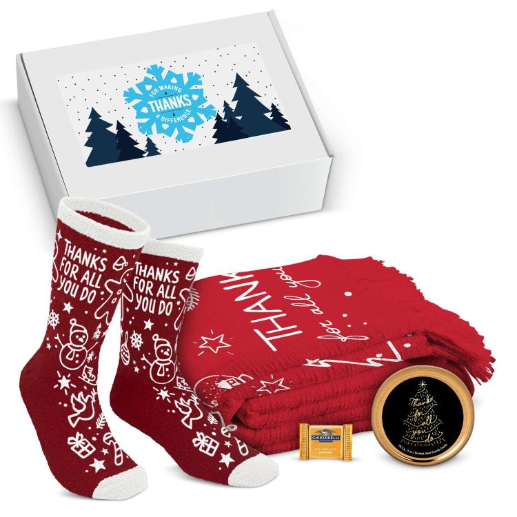 Home / Corporate Gifts / Shop by Occasion / Holiday Gifts / Blankets & Socks Return to Holiday Gifts Holiday Blankets & Cozy Gifts Page 2 Filters There are 30 Blankets & Socks Products Sort by: Bestselling Newest Price $ - $$$ Price $$$ - $ Name Aa-Zz Name Zz-Aa GB-FSB-FTAD-TAD Thanks Doodles Cozy Classics Gift Box ON SALE $64.99 - $69.99 ON SALE $89.04 - $95.89 Order as few as 1 Ships in 1 day GB-FSB-FTAD-TAD 1 2